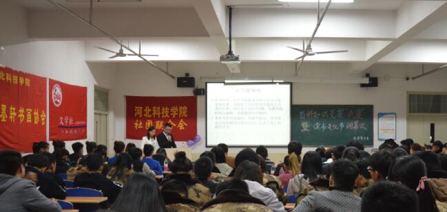 “立身以立学为先,立学以读书为本”。秋风瑟瑟,落叶翩翩,随着读书文化节各项活动的展开,百科知识竞赛初赛的激烈竞争,2017年11月15日,社联主办的第四届“以书为友”百科知识决赛暨读书文化节颁奖典礼在六教301晚上7:0...